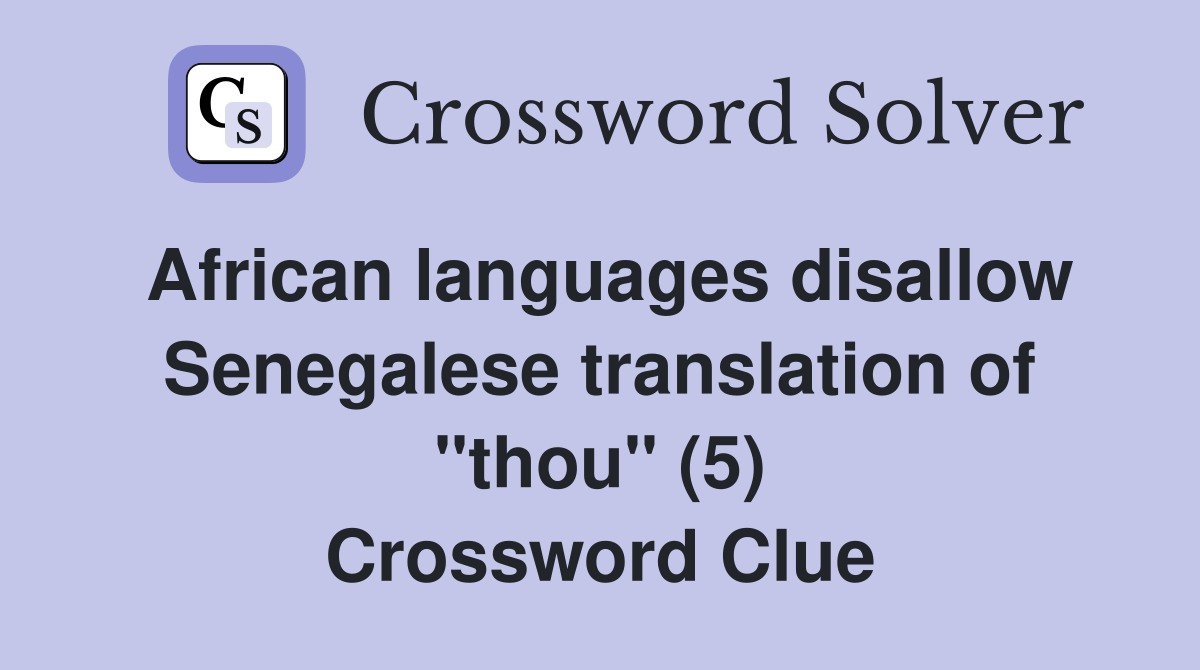 African languages disallow Senegalese translation of #39 thou #39 Crossword
