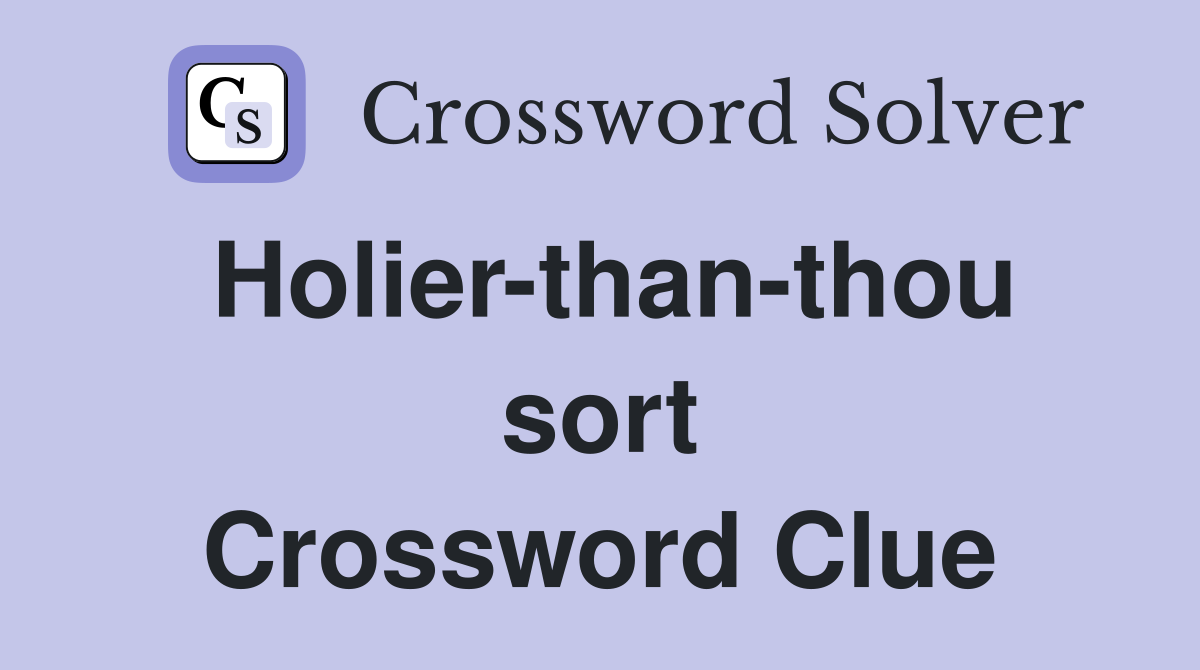 Holier than thou sort Crossword Clue Answers Crossword Solver
