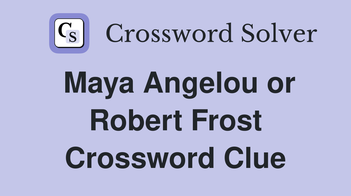Maya Angelou or Robert Frost Crossword Clue Answers Crossword Solver