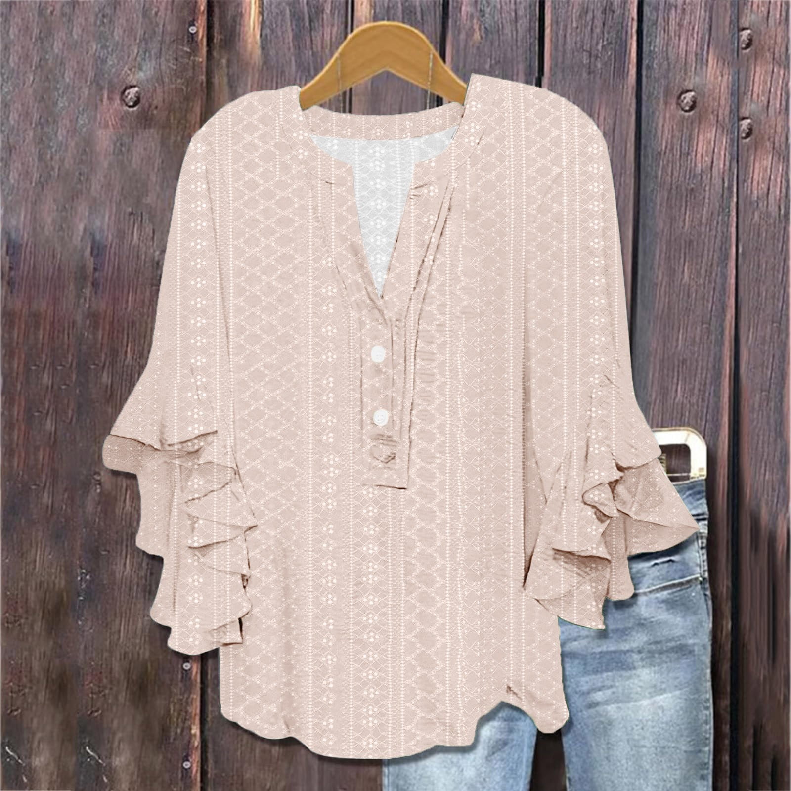 Aligament V Neck T Shirts for Women Tie Button Hollow Fabric Ruffled