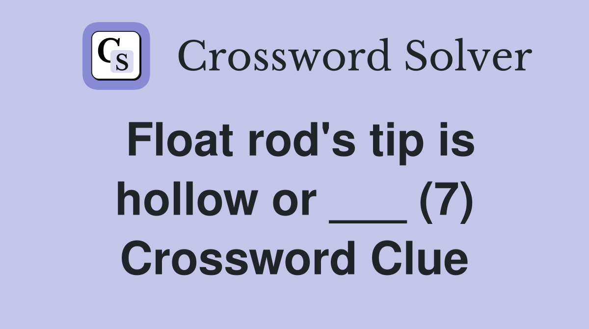 Float rod #39 s tip is hollow or (7) Crossword Clue Answers