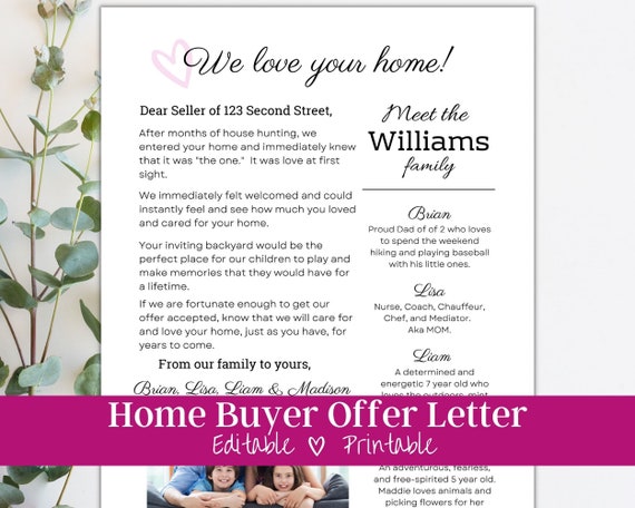 Home Offer Letter Template Home Buyer Letter Template Home Etsy