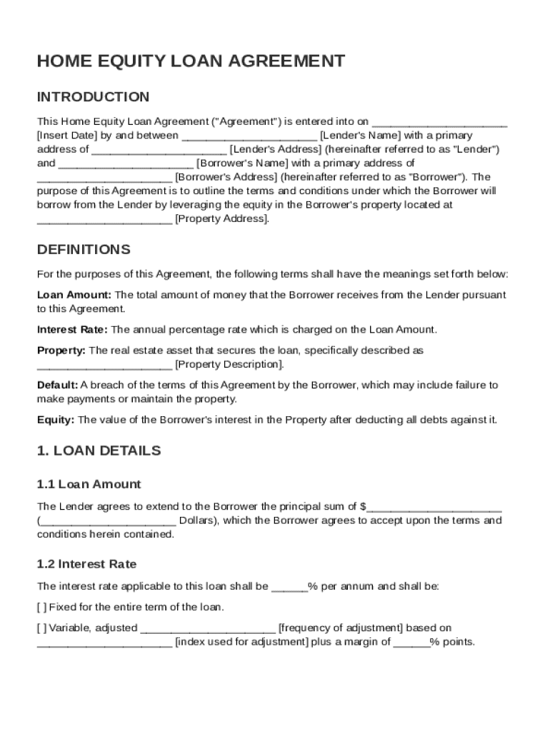 Home Equity Loan Agreement Template: Fill out sign online DocHub