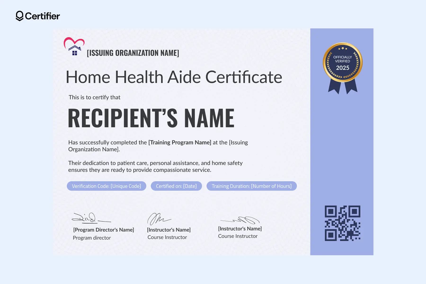 Replica Home Health Aide (HHA) Certificate Maker Validgrad