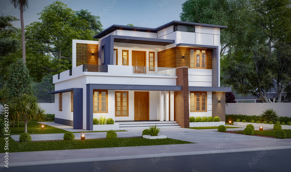 3d illustration of a newly built luxury home Stock Illustration Adobe