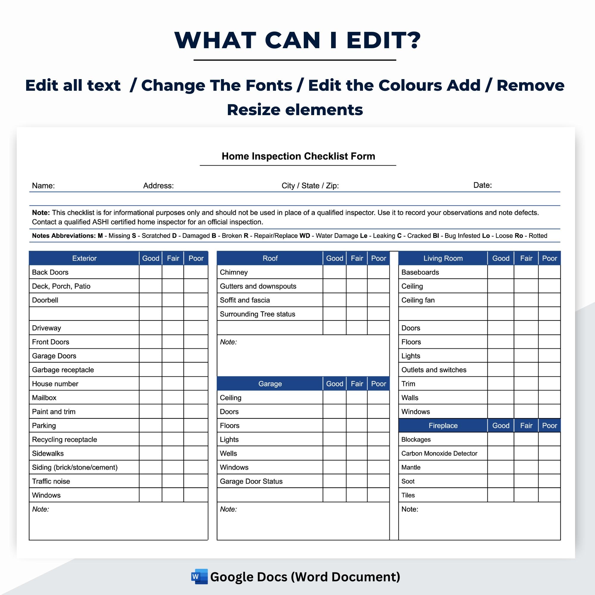 Free Home Inspection Checklist Template in Google Docs and Microsoft