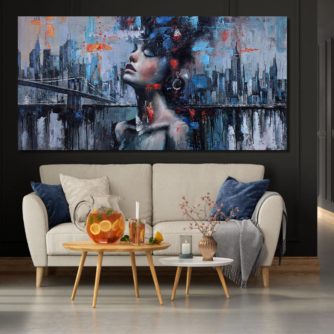 AatoeaX Navy Blue Painting Wall Art Black Woman Picture for Living Room