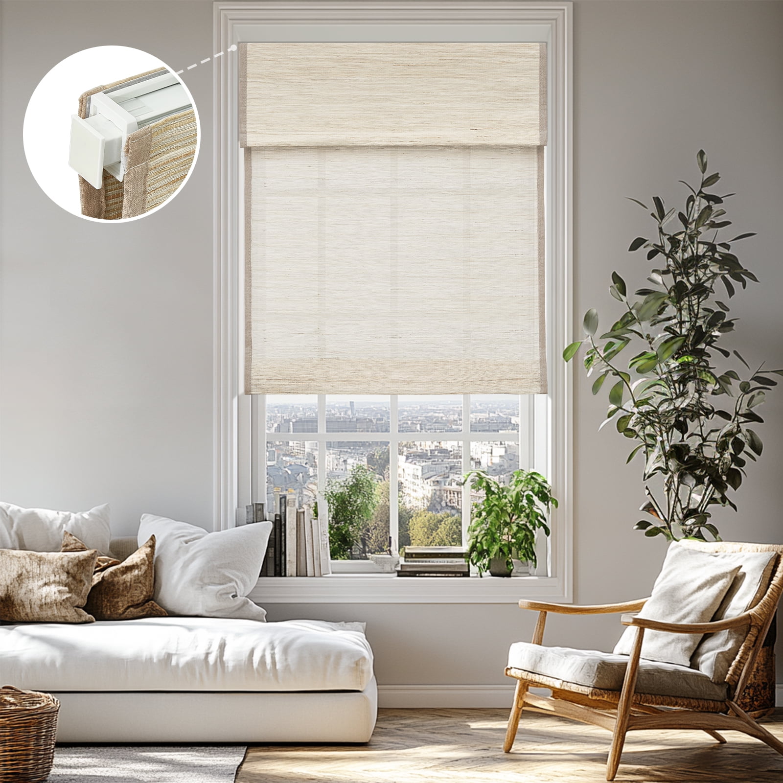 Keego Upgraded No Drill Roman Shades Thermal Insulating Natural Fabric