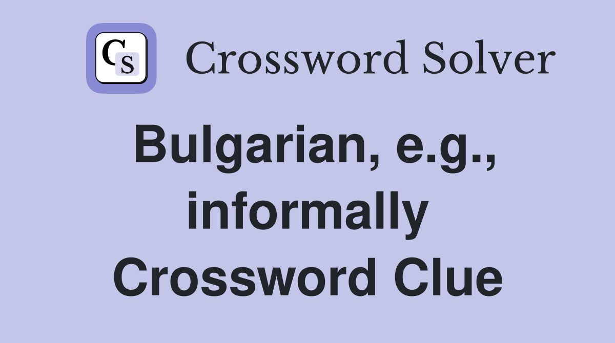 Bulgarian e g informally Crossword Clue Answers Crossword Solver
