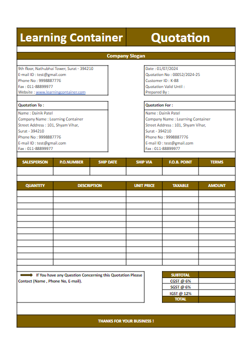 50 Professional Quotation Template in Excel Free Download