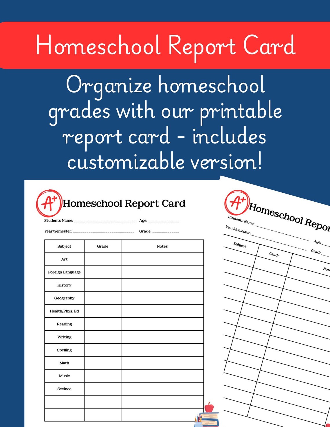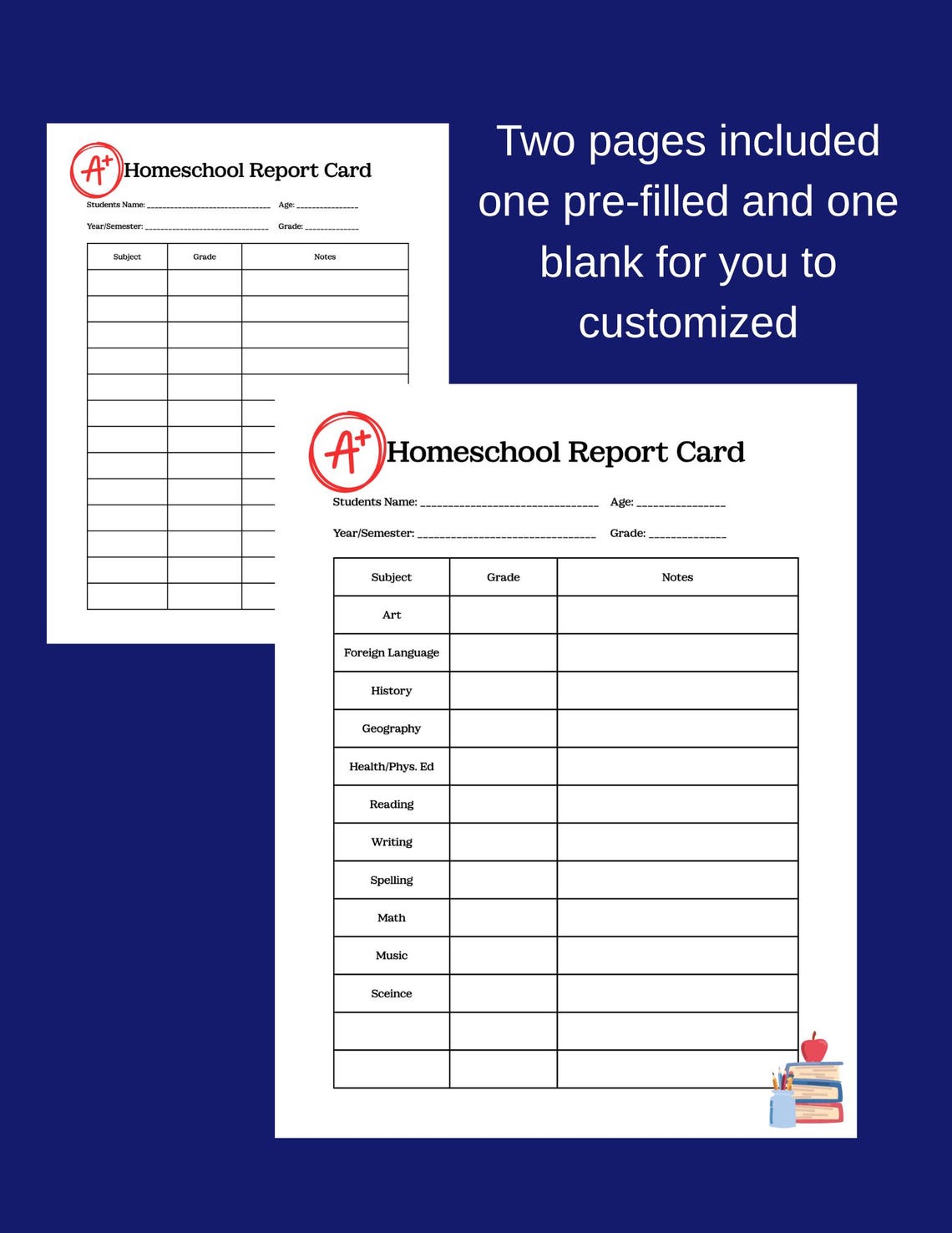 Homeschool Report Card Printable PDF Prefilled Blank Pages for