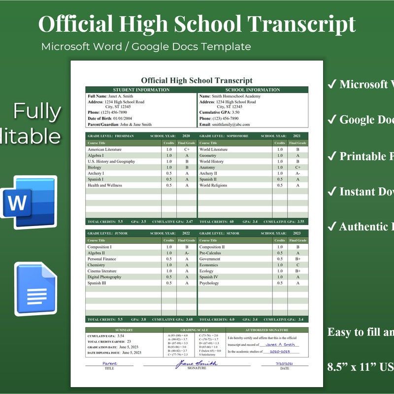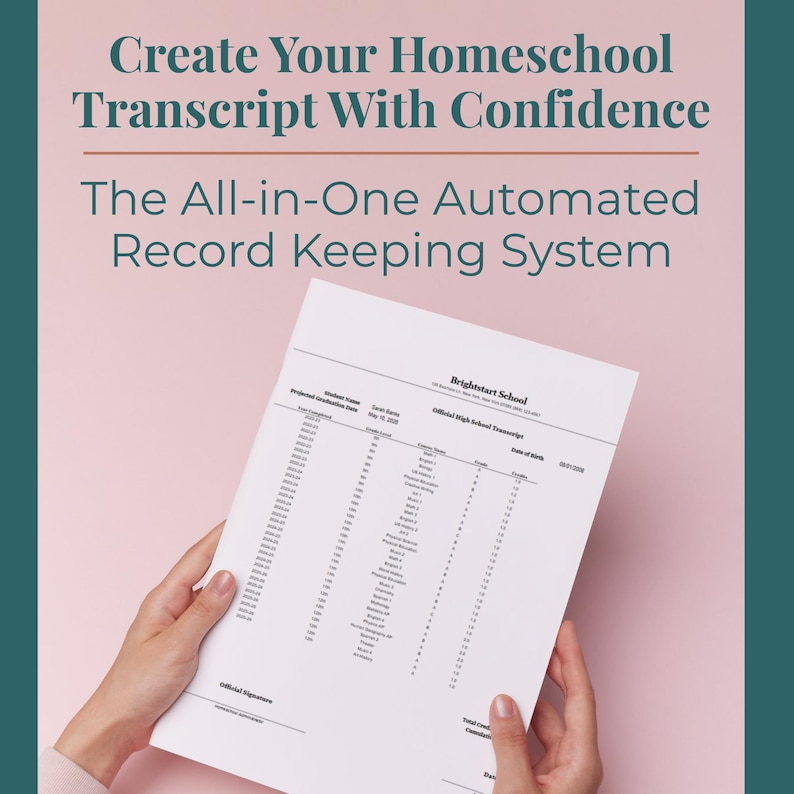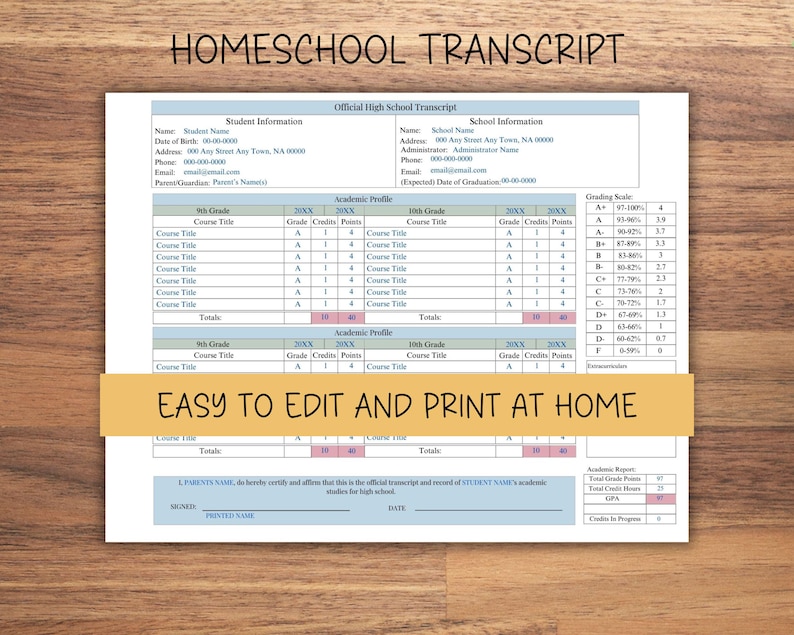 Homeschool Transcript Template: Official High School Grades (editable