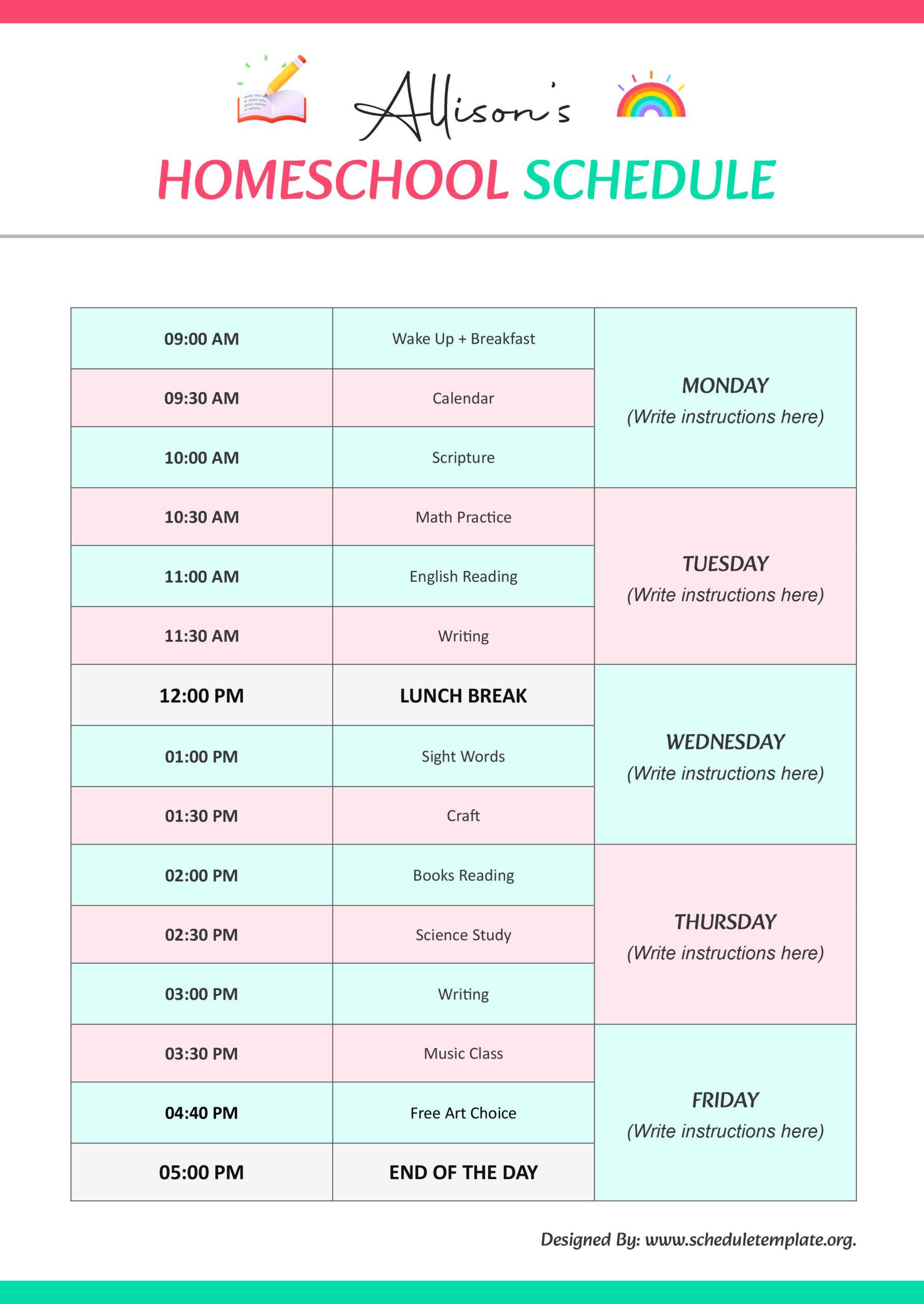 35 Editable Homeschool Schedule Templates FREE Homeschool schedule