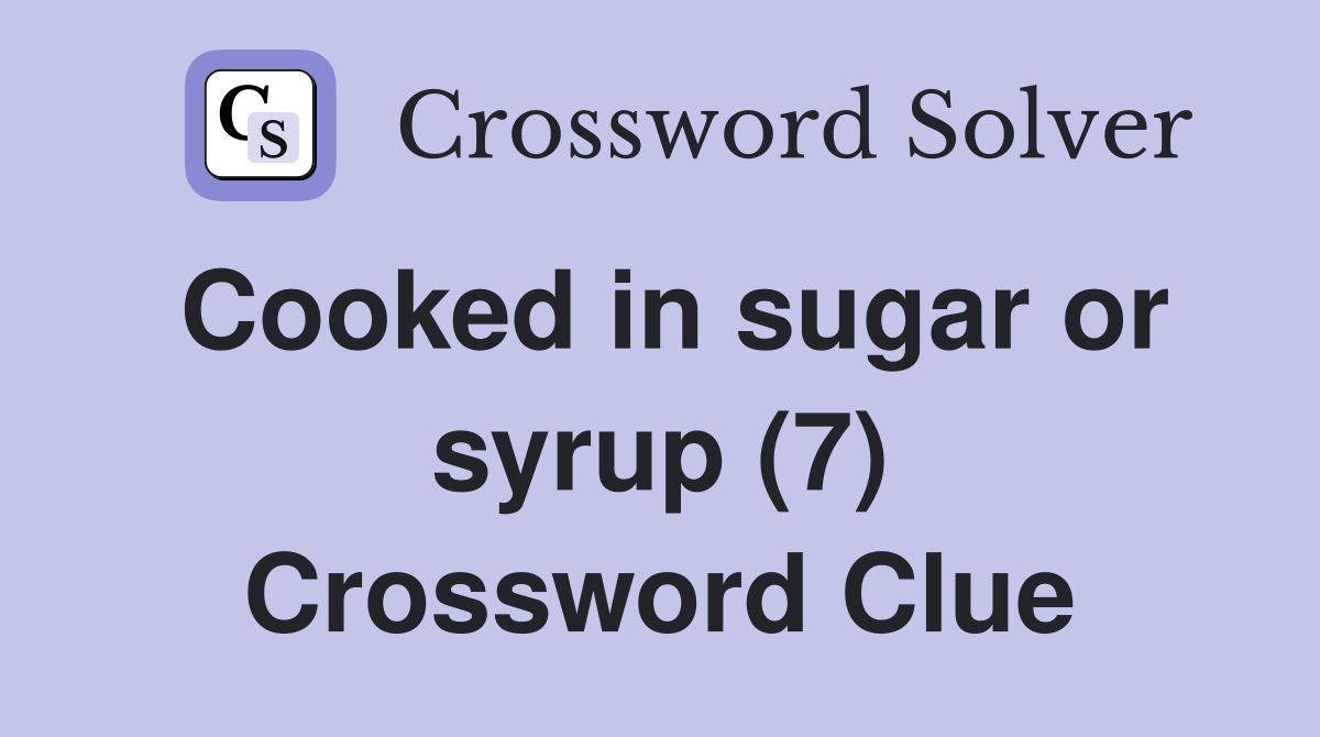 Cooked in sugar or syrup (7) Crossword Clue Answers Crossword Solver