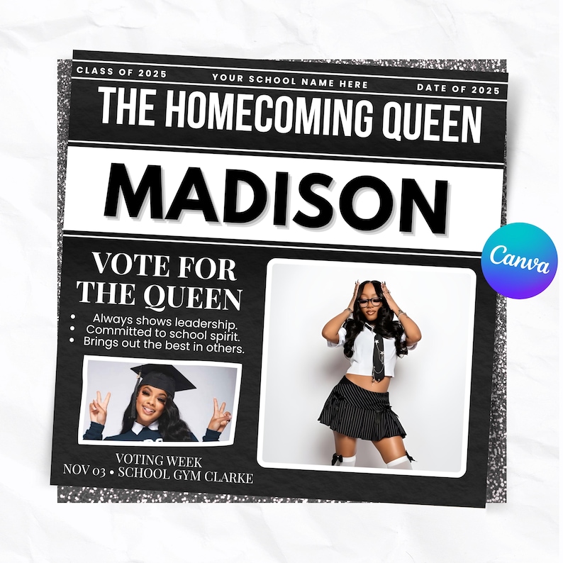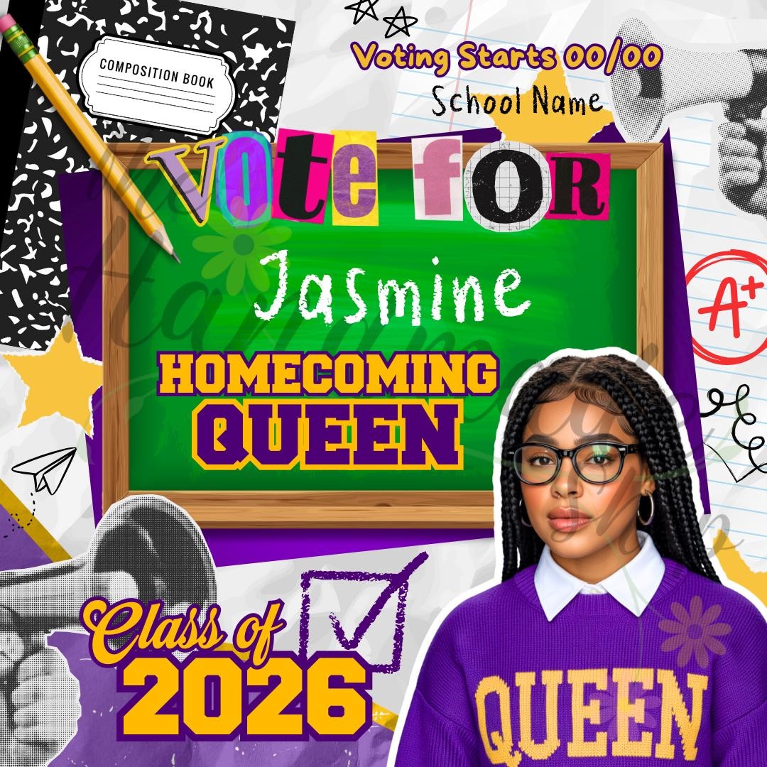 Homecoming Queen Election Flyer Template: Customizable HOCO Campaign