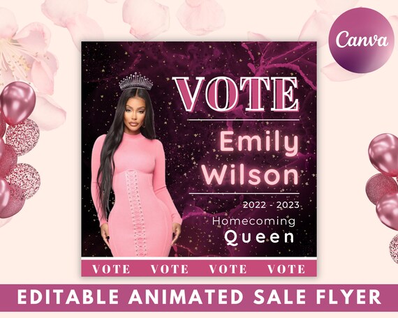 Vote Homecoming Queen Campaign Flyer DIY Voting Campaign Editable