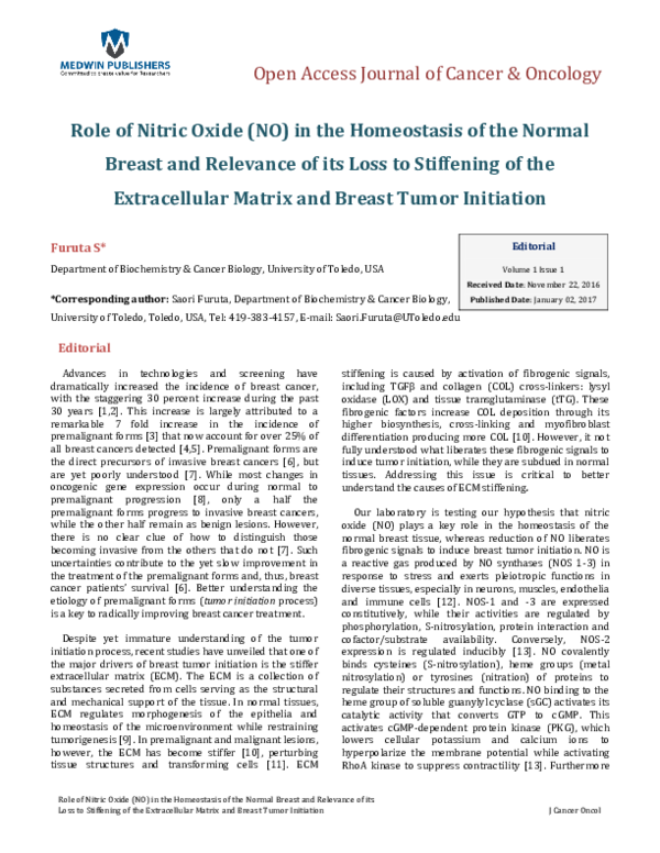 (PDF) Role of Nitric Oxide (NO) in the Homeostasis of the Normal Breast