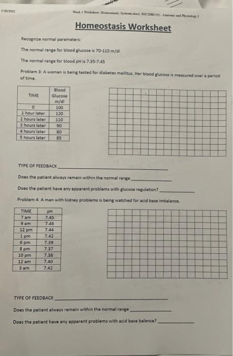 Homeostasis Worksheet Recognize normal parameters The Chegg com