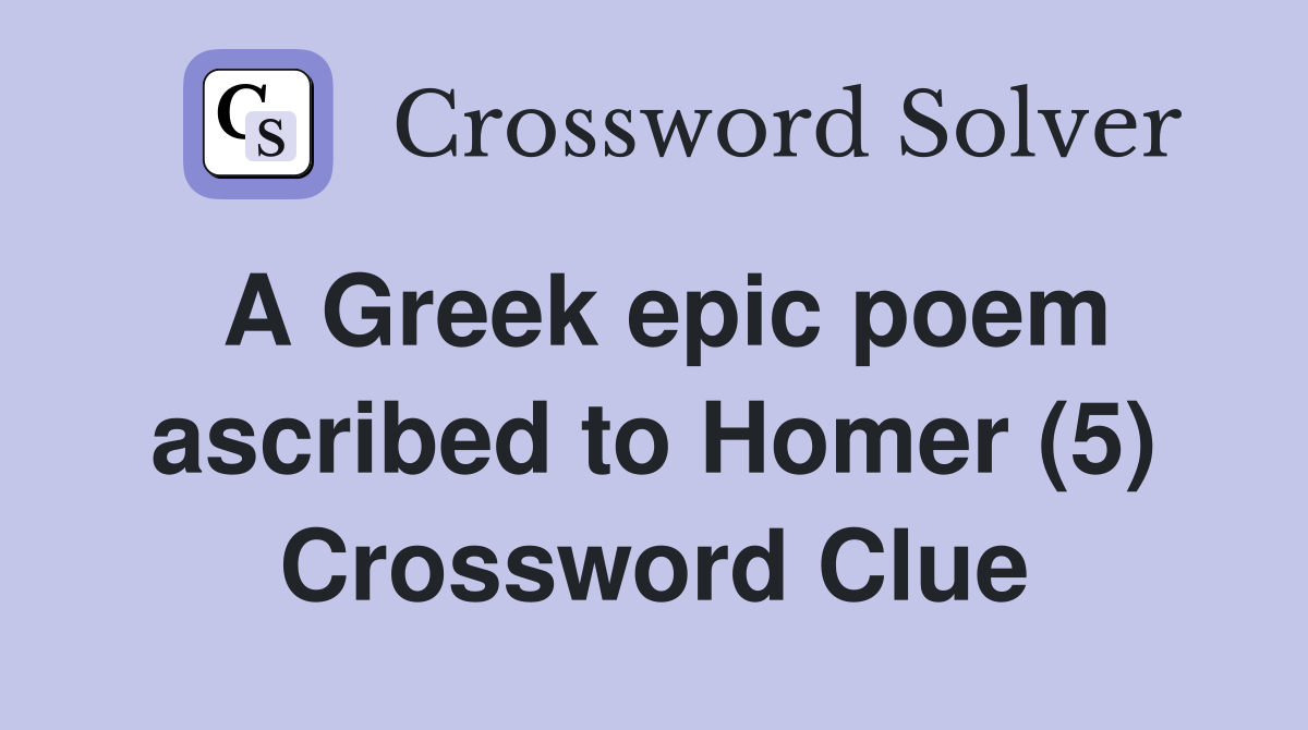 A Greek epic poem ascribed to Homer (5) Crossword Clue Answers
