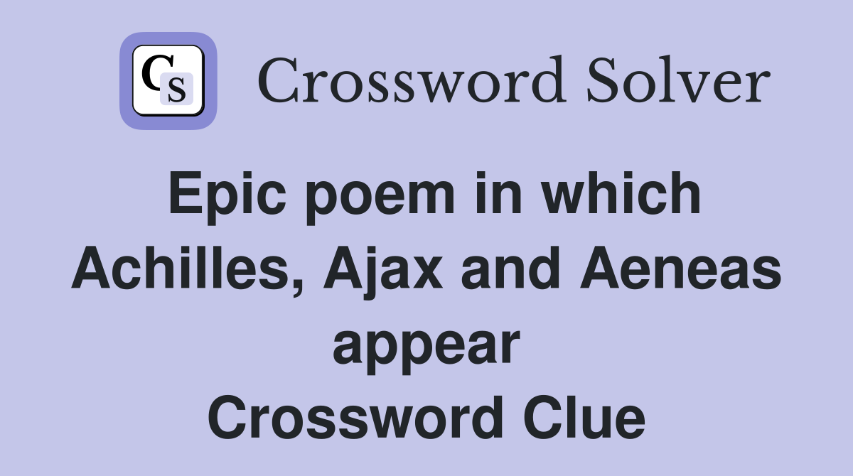 Epic poem in which Achilles Ajax and Aeneas appear Crossword Clue