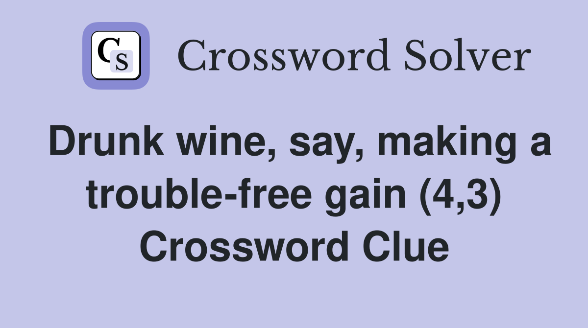 Drunk wine say making a trouble free gain (4 3) Crossword Clue
