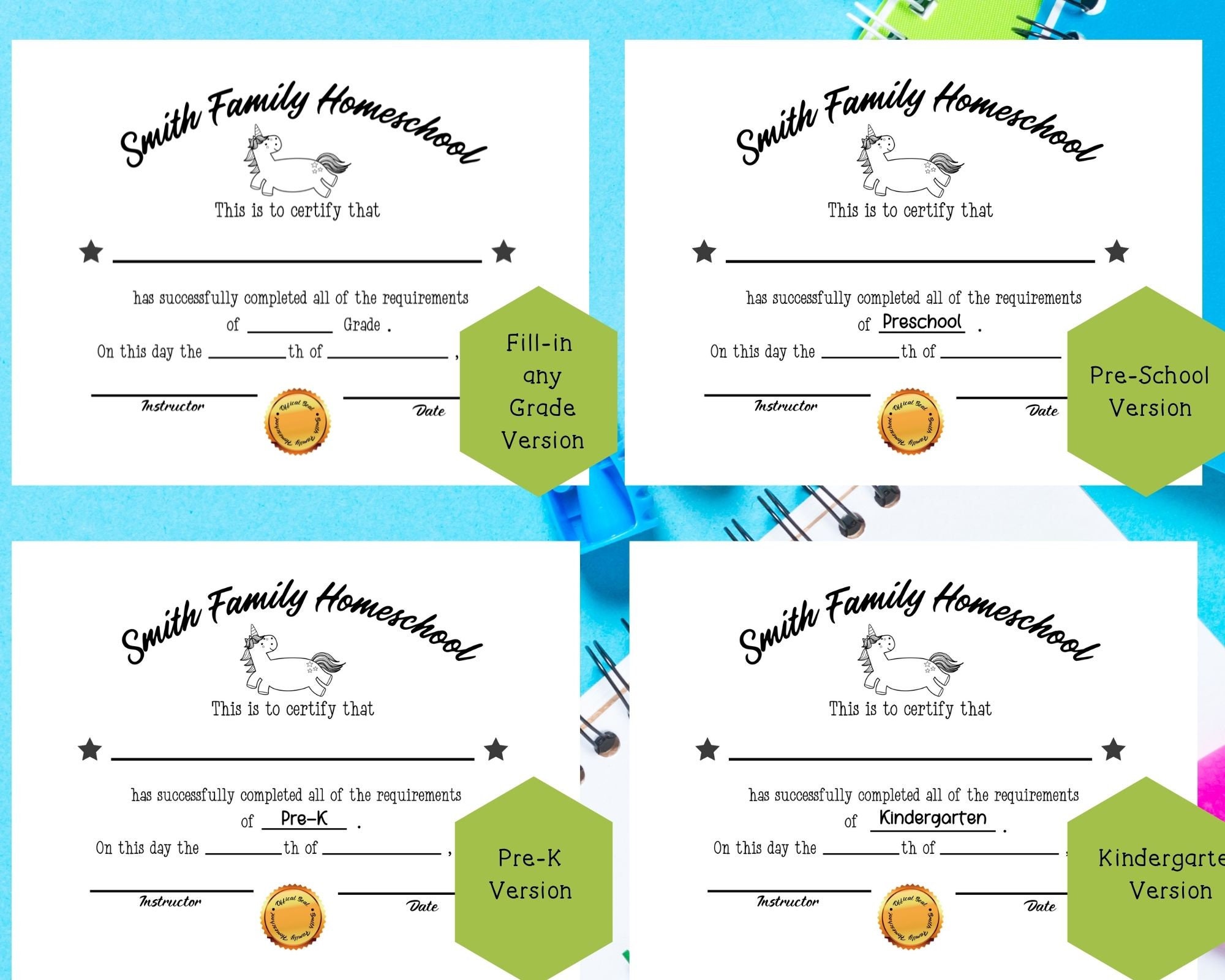 Printable Homeschool Certificates for Elementary Students Etsy