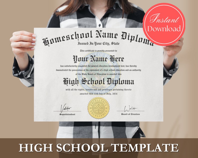 Printable Homeschool Diploma Template Editable High School Diploma 8