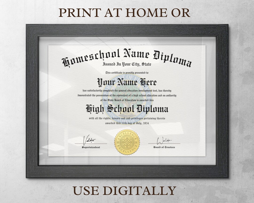Printable Personalized Homeschool High School Diploma Homeschool