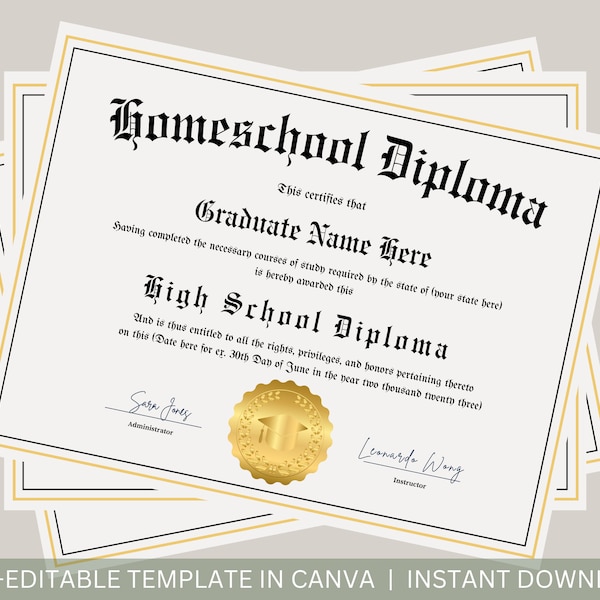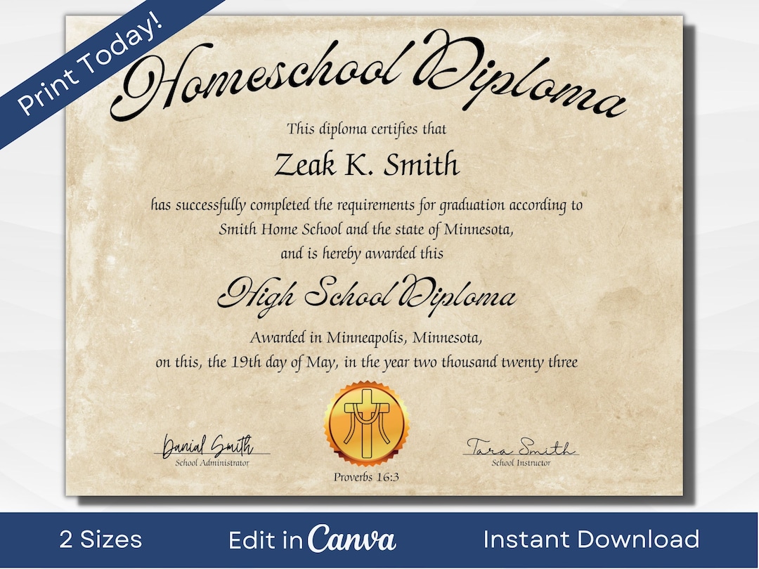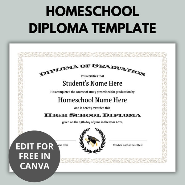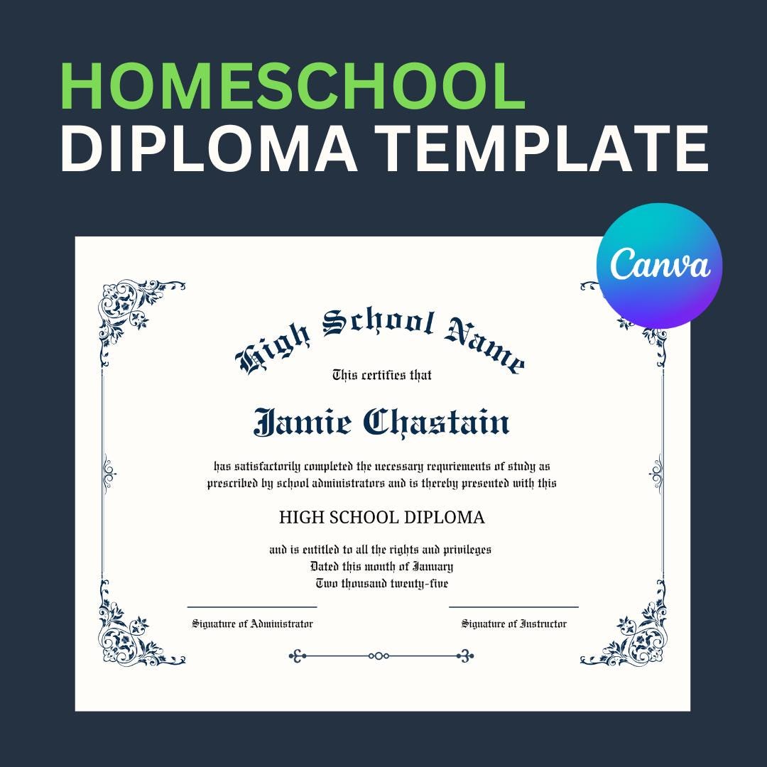 Editable High School Diploma Template Printable Canva Homeschool