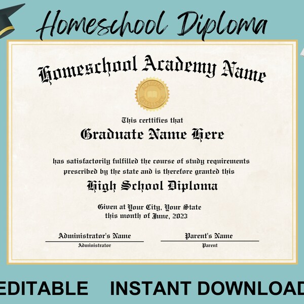 HomeSchool Diploma Template Available instantly after purchase