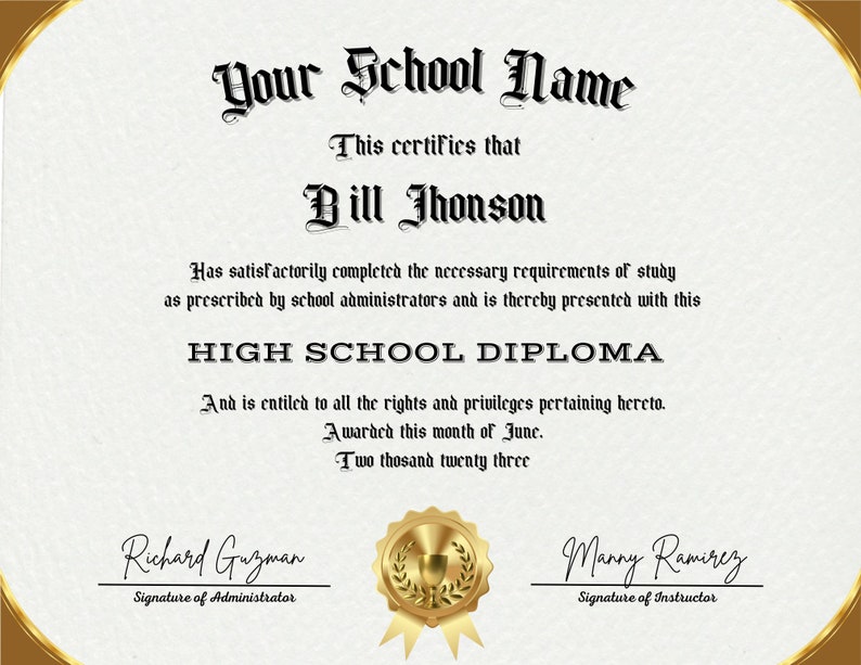 Editable Highschool Diploma Template Minimalist Printable Etsy