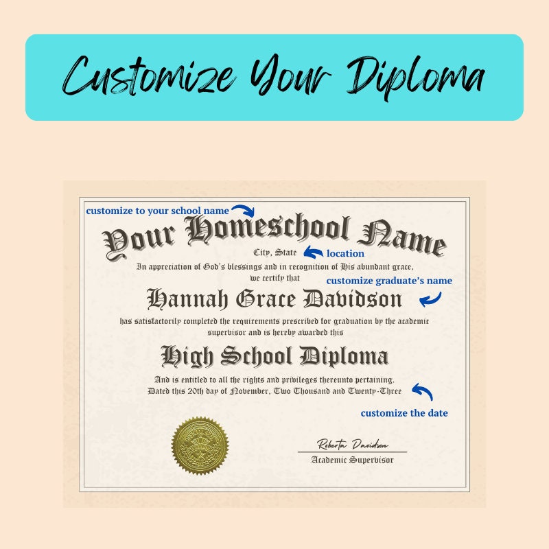 Printable Homeschool Diploma Template Editable High School Diploma