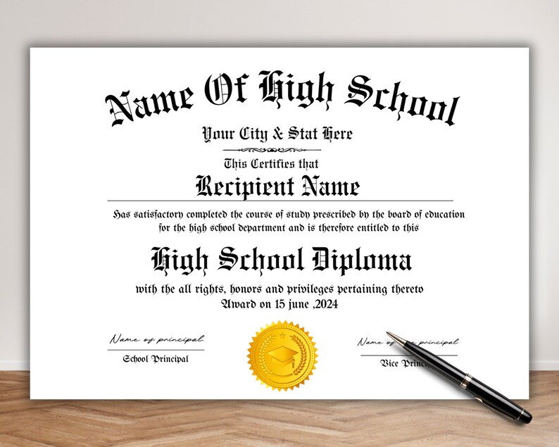 High School Diploma Template Editable High School Diploma for Home