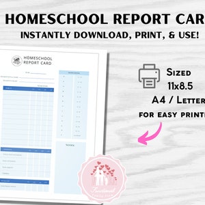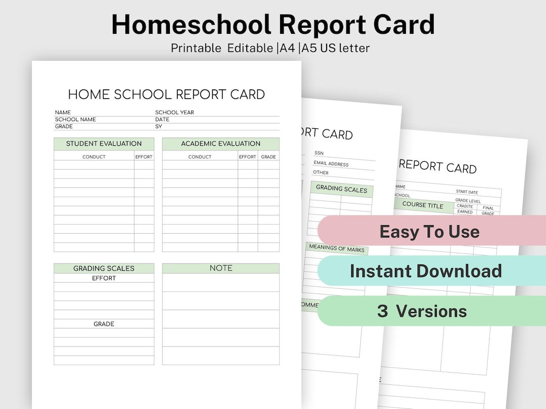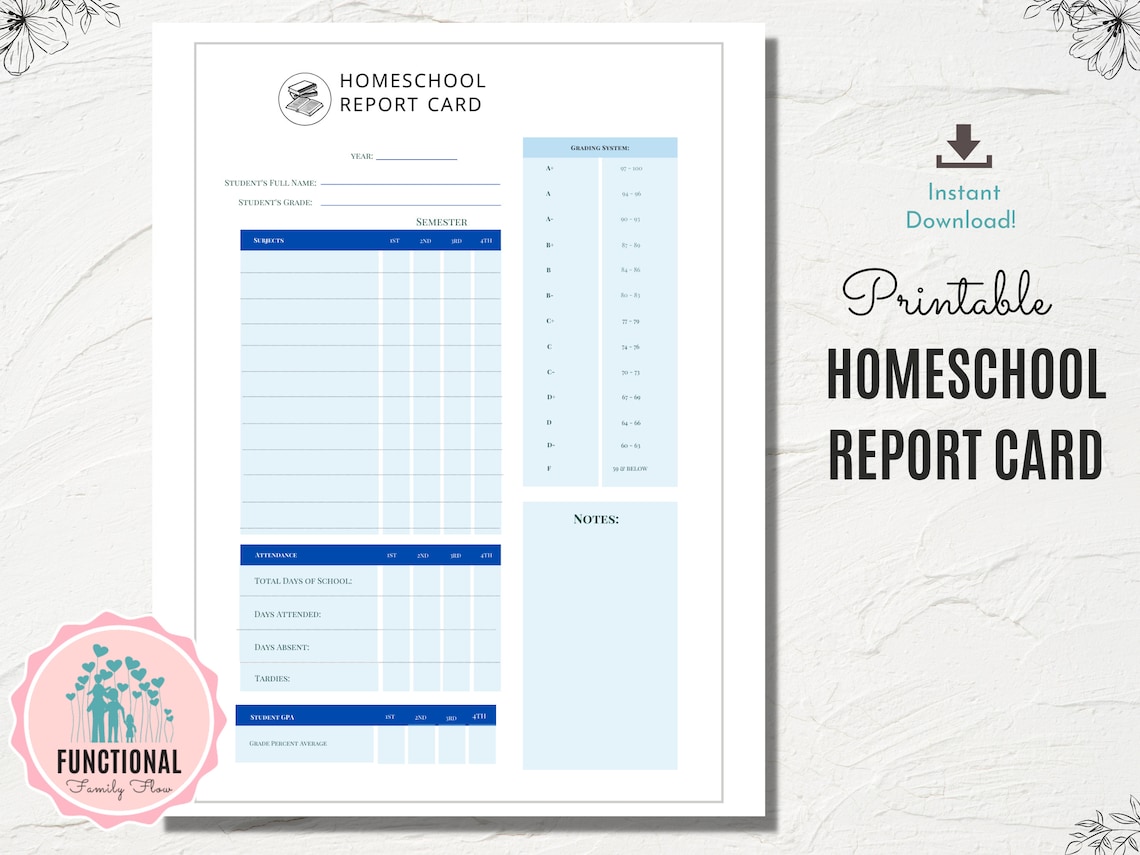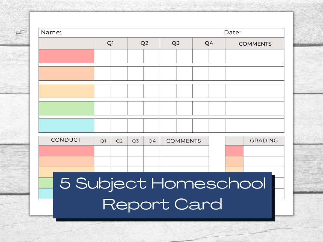HOMESCHOOL REPORT CARD Printable Homeschool Report Card Template