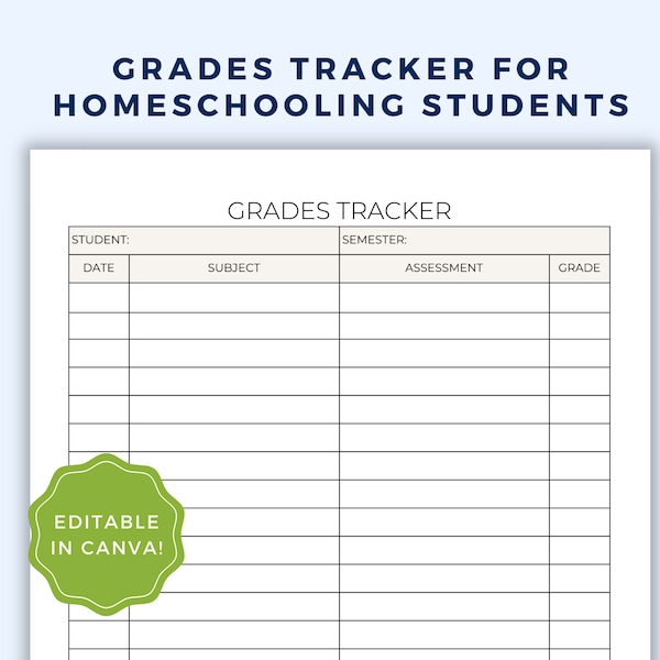 Homeschool Gradebook Printable Grade Book Template Instant Etsy