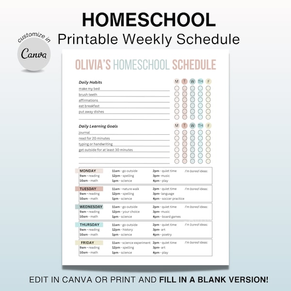 Homeschool Planner Printable Instant PDF Download 8 5 quot x11 quot Daily