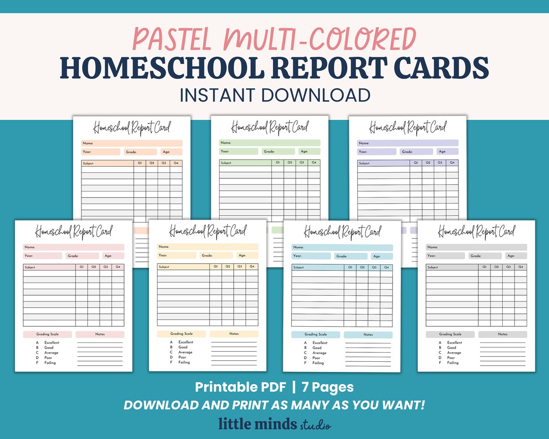 Pastel Multi colored Homeschool Report Card Printable Homeschooling