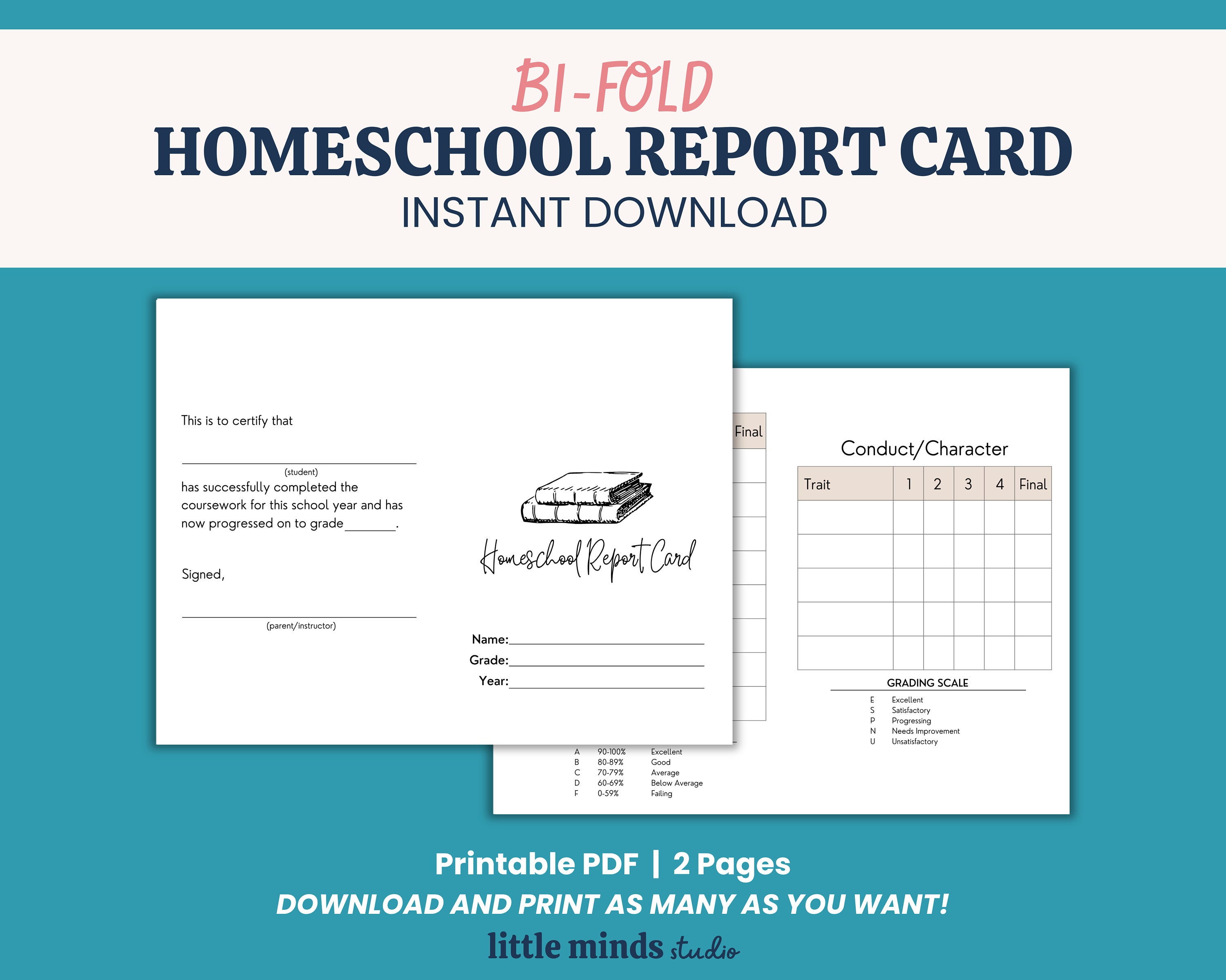 Bi fold Homeschool Report Card Printable Homeschool Grade Tracker