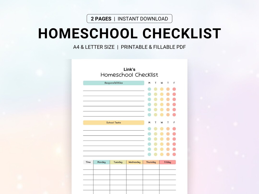 Homeschool Checklist for Kids Printable Fillable PDF Homeschool