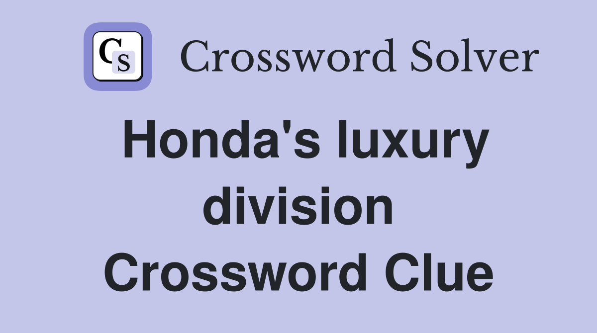 Honda #39 s luxury division Crossword Clue Answers Crossword Solver