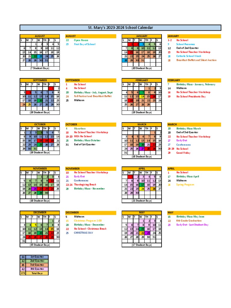 2023 24 School Calendar Mary Star of the Sea School Hawaii