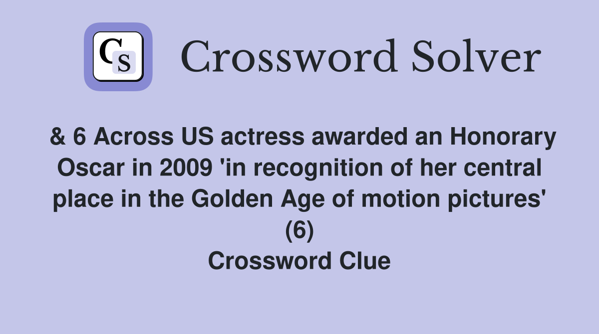 6 Across US actress awarded an Honorary Oscar in 2009 #39 in recognition