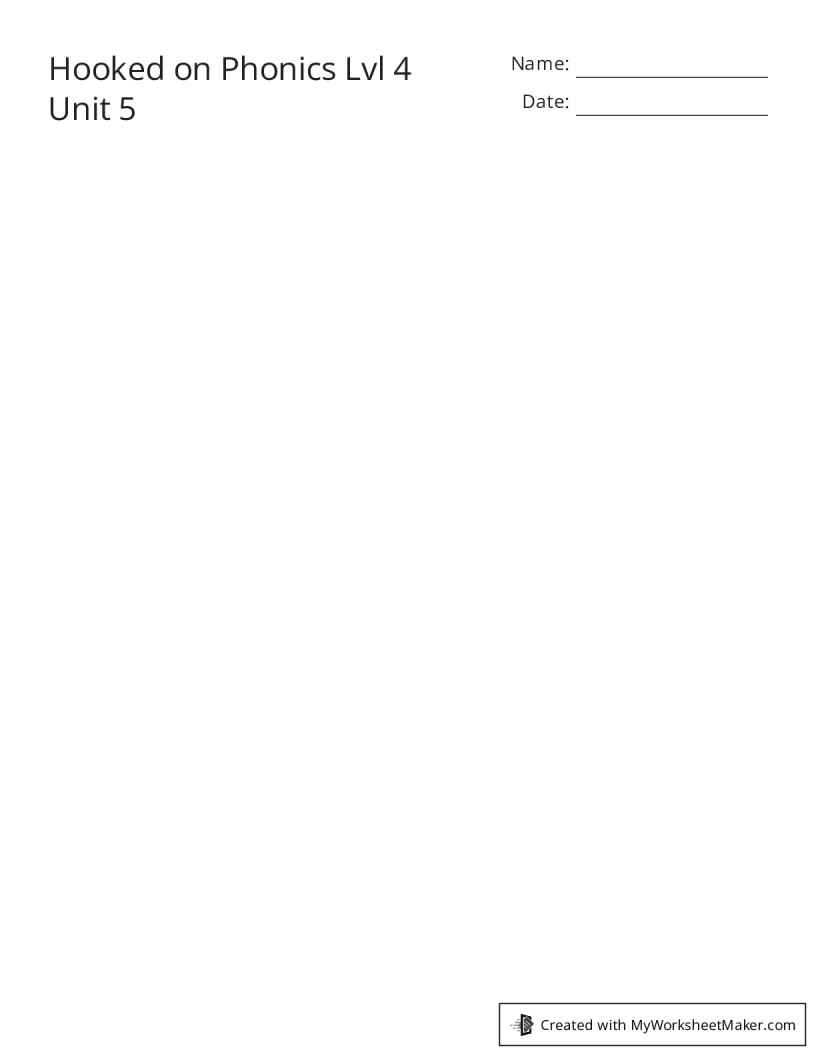 Hooked on Phonics Lvl 4 Unit 5 My Worksheet Maker: Create Your Own