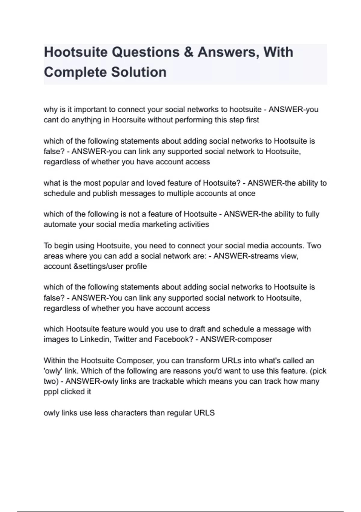 Hootsuite Questions Answers With Complete Solution Hootsuite