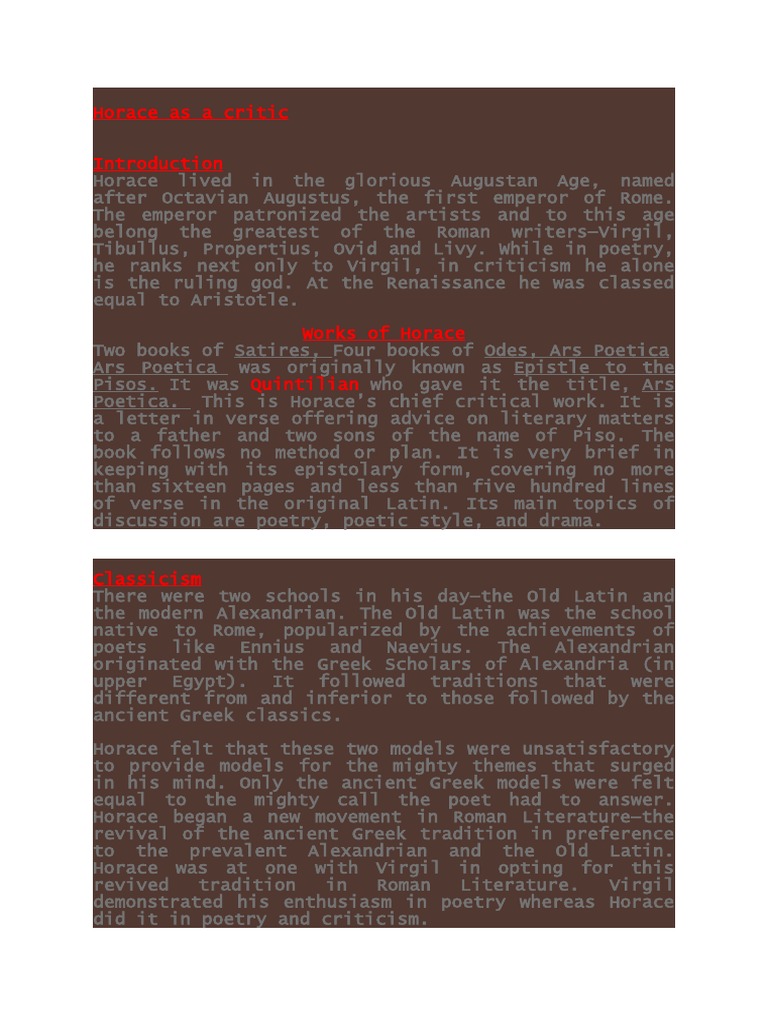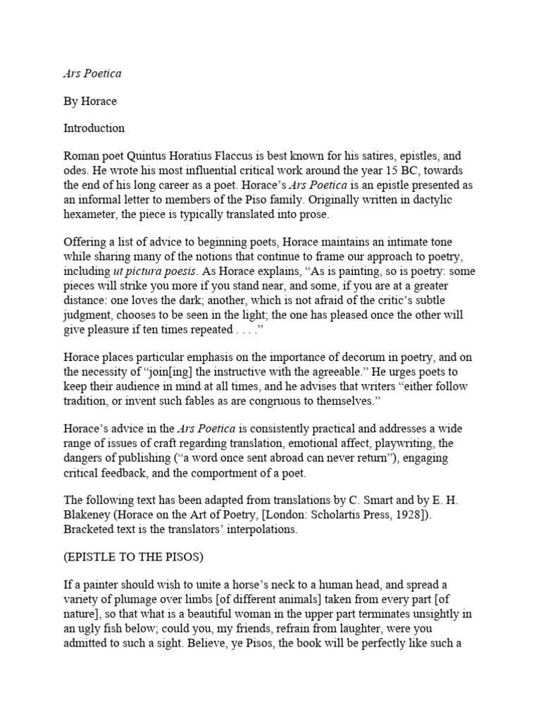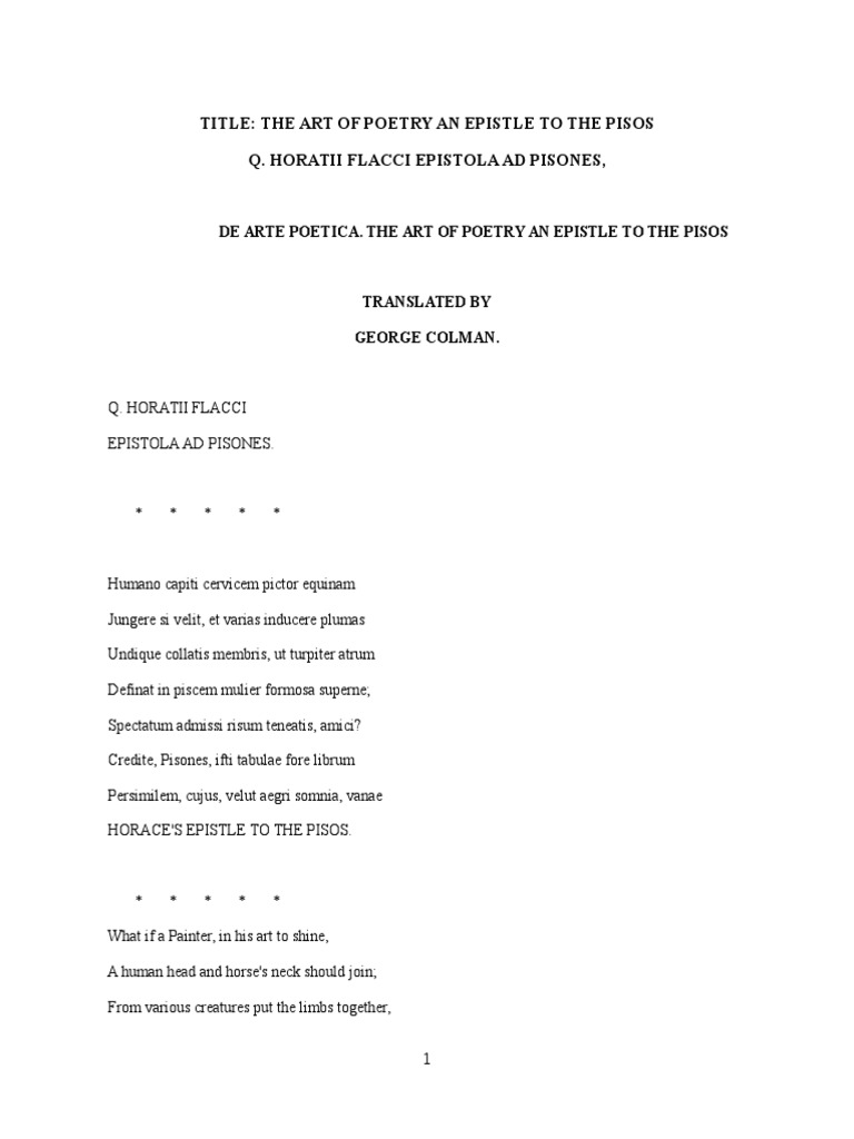 Horace Ars Poetica MA English Literature Semester 1 Literary