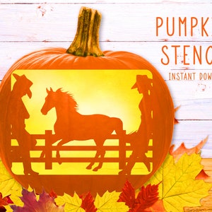 Cowboy Pumpkin Stencil Cowgirl Printable Stencil Horse Pumpkin