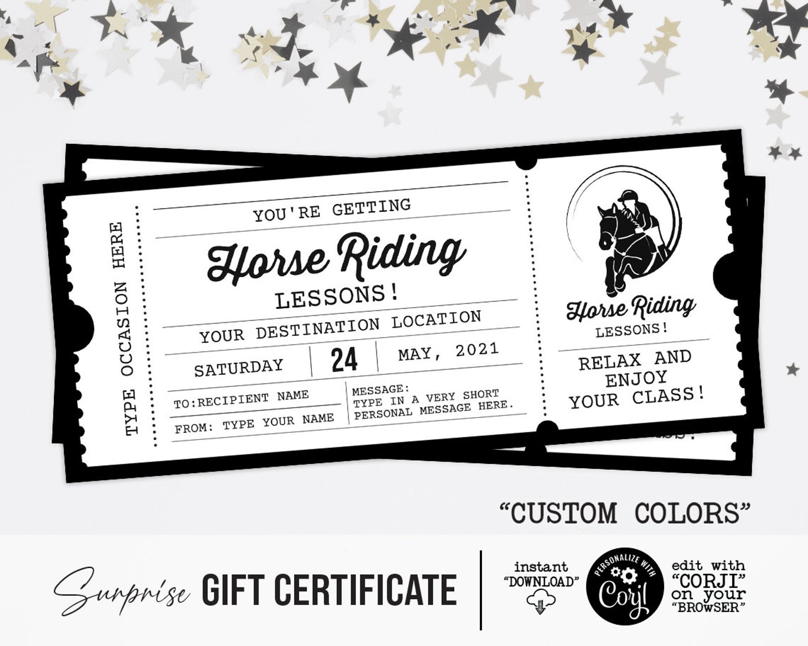 Horse Riding Lessons Gift Voucher Template Certificate Ticket Etsy