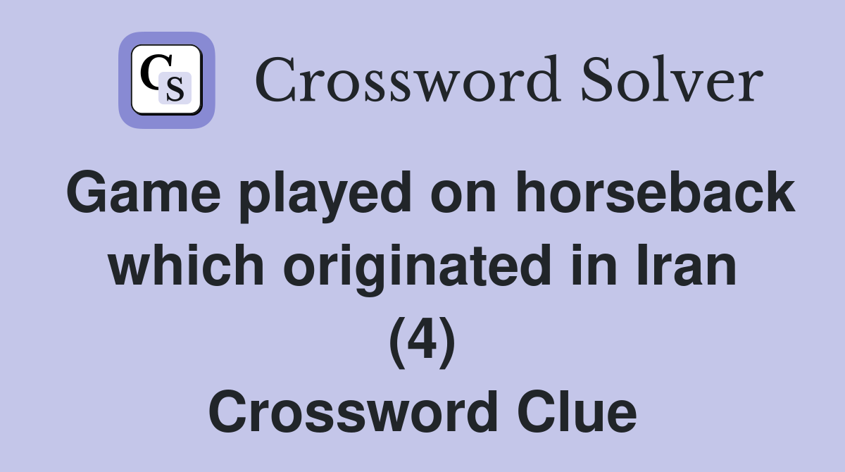 Game played on horseback which originated in Iran (4) Crossword Clue