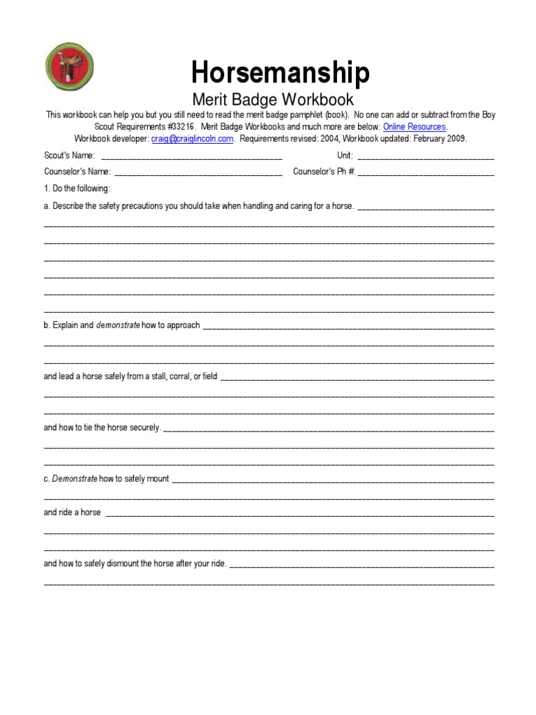 Horsemanship Merit Badge Worksheet