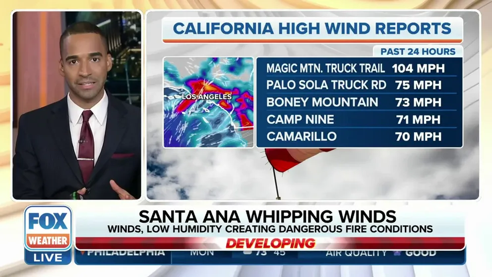 Santa Ana winds driving dangerous fire weather in Southern California